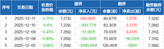 电投产融:融资净买入430.08万元,融资余额7.27亿元(12-11)