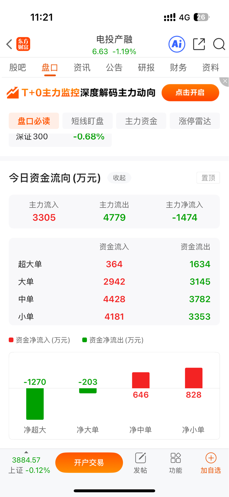 $电投产融(SZ000958)$ MD,主力天天出货,快半年都没有净流入了