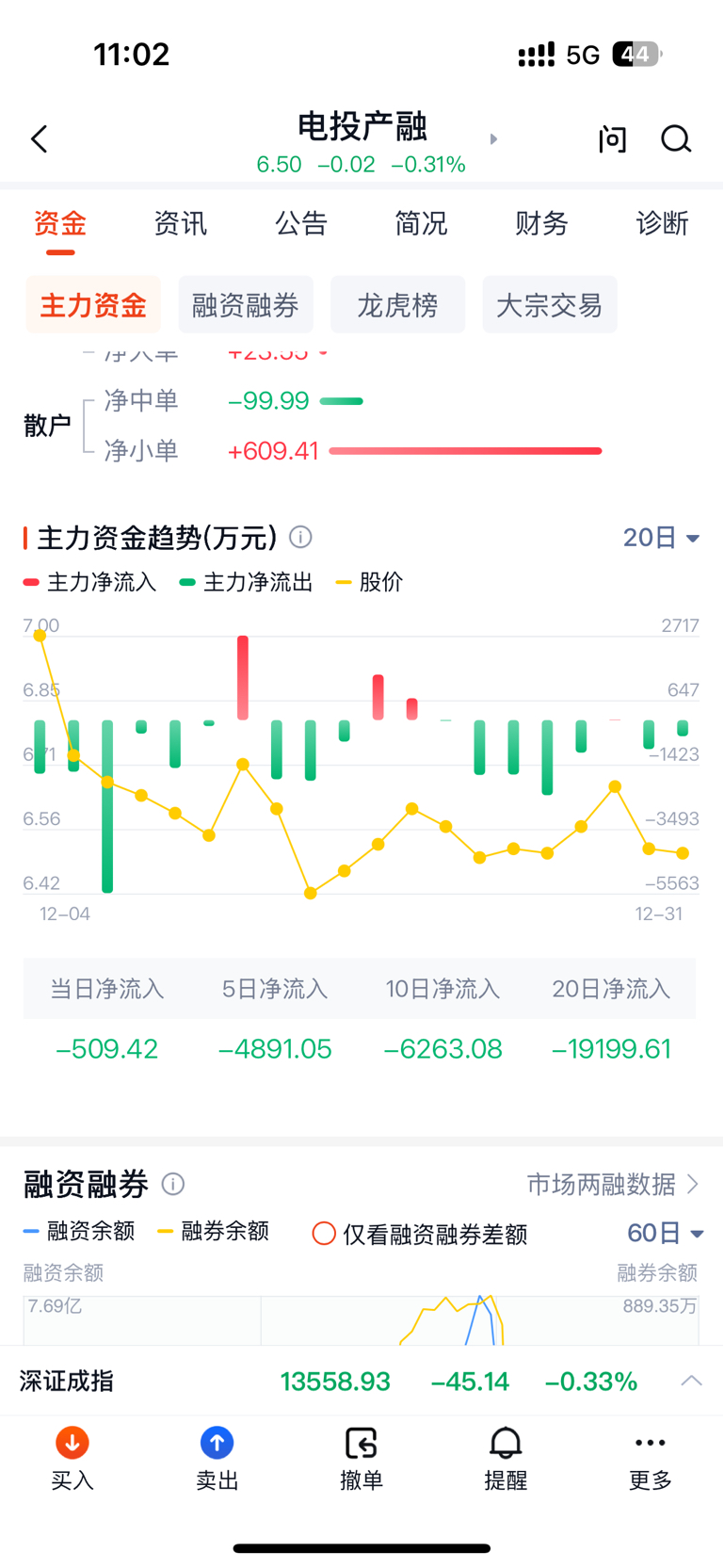 $电投产融(SZ000958)$ 一直在流出,穷庄。要被气死