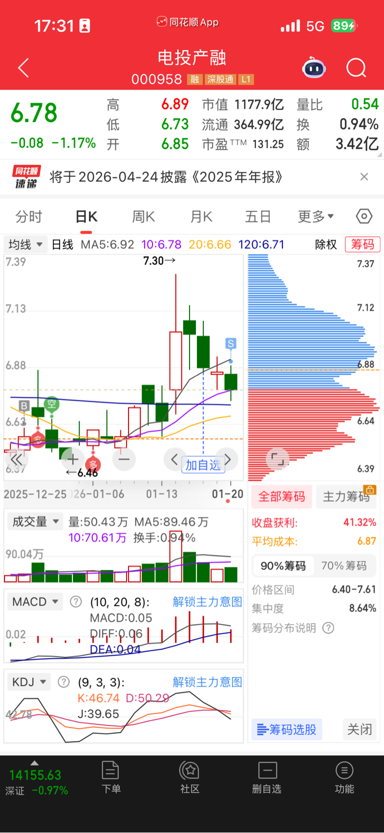 $电投产融(SZ000958)$ 跑了,留下的发财