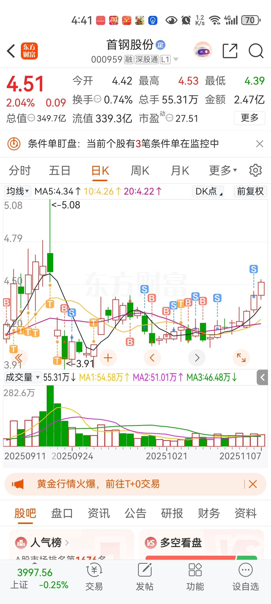 $首钢股份(SZ000959)$ 本想T一把 结果T飞了
