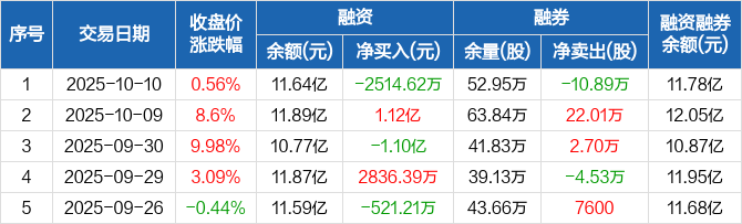 锡业股份:融资净偿还2514.62万元,融资余额11.64亿元(10-10)