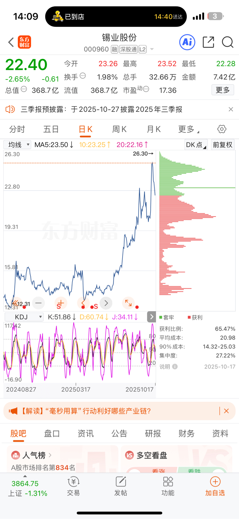 $锡业股份(SZ000960)$ #投资干货# 兄弟们,感觉我什么时候解套