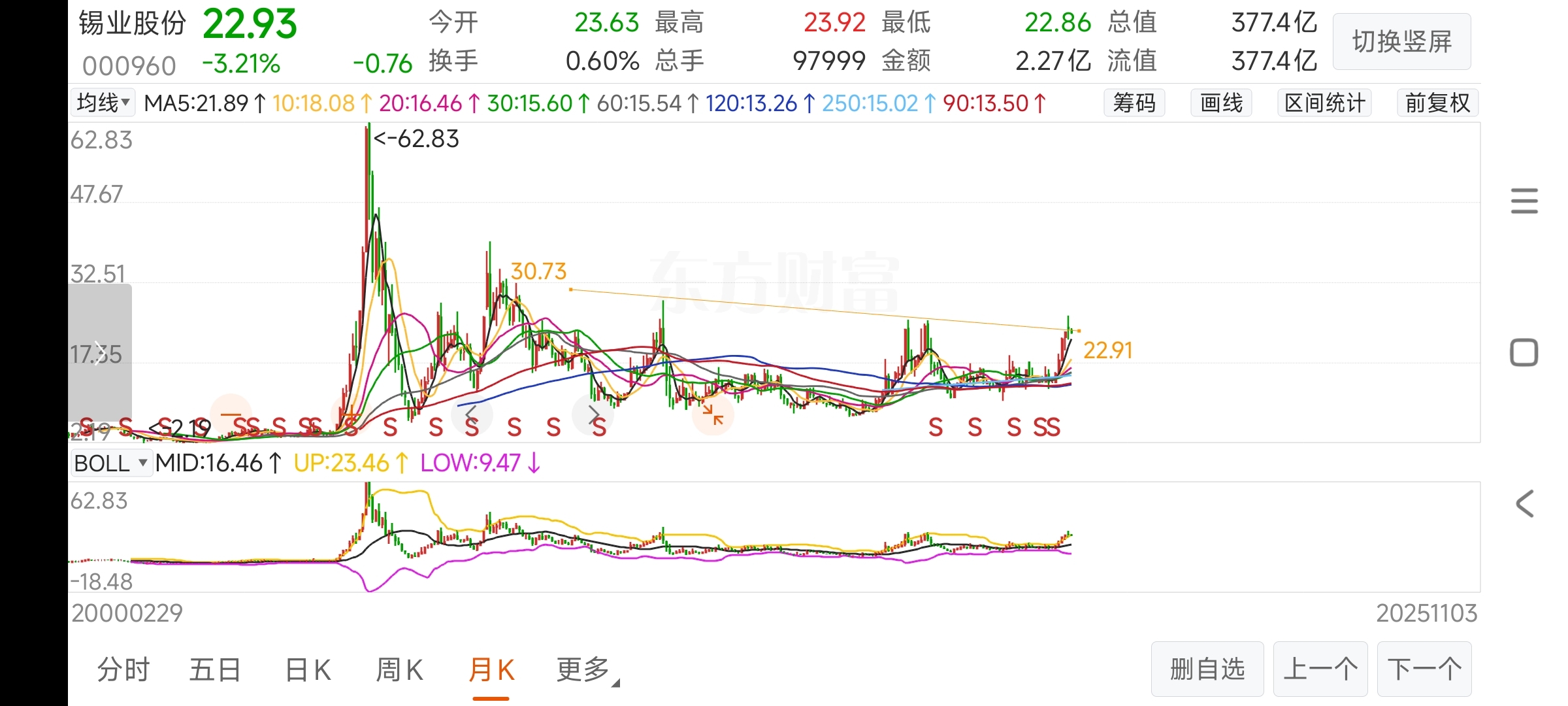 $锡业股份(SZ000960)$ 月线头肩底颈线位22.91干就完了