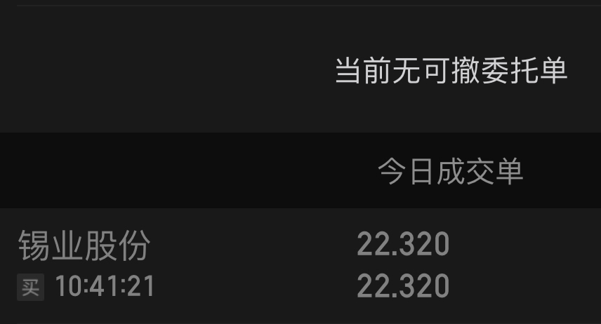 22.32已加仓,感谢市场送钱。今天持仓股中锡业跌最多,选择加仓锡业。前提:本人