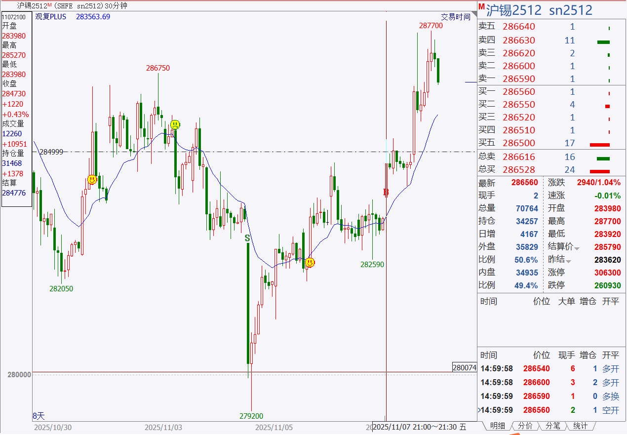 麻油,锡业股份这波没吃到,沪锡跟着系统总该吃肉了吧!