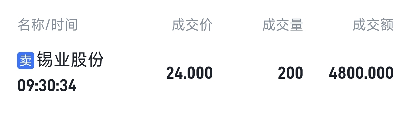 $锡业股份(SZ000960)$ 24卖了。就砸盘了。。真会玩,又挣200,昨天挣1*将近200,真香