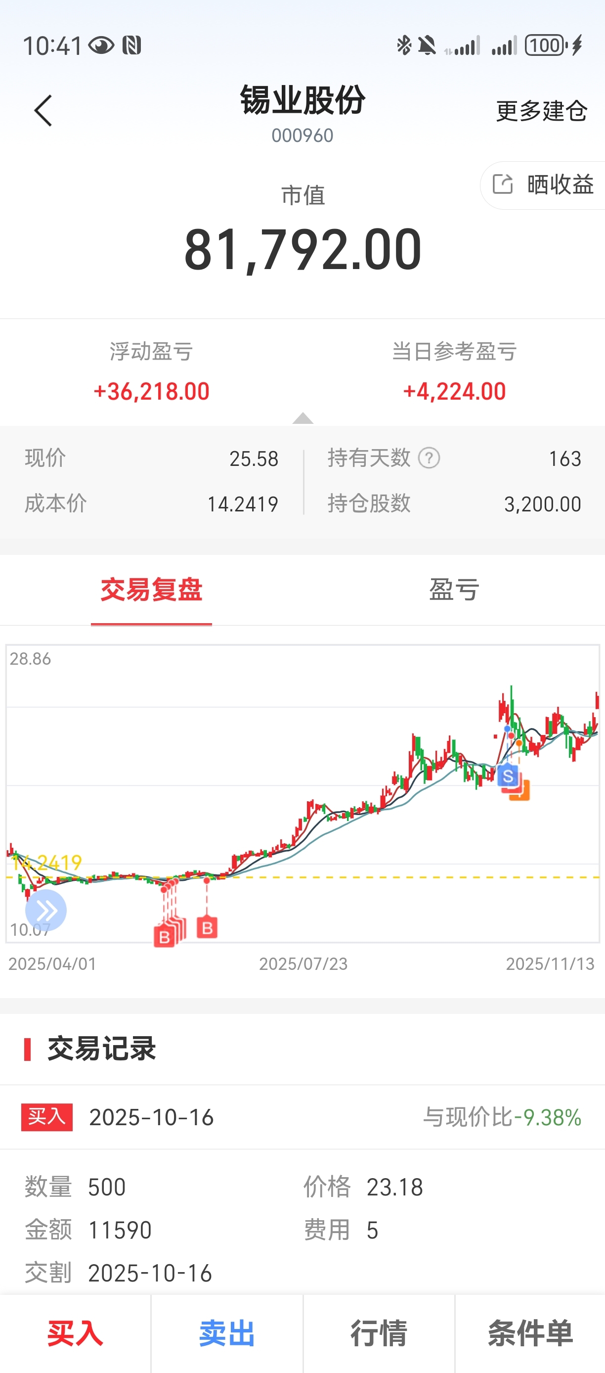 $锡业股份(SZ000960)$ 如果翻倍了我就卖一半让利润奔跑