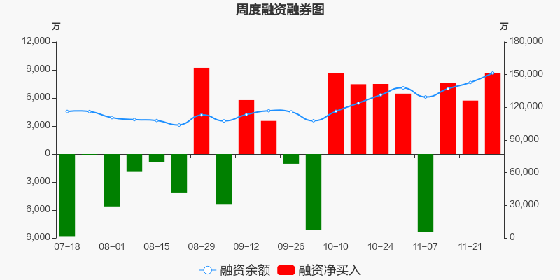 锡业股份本周(2025/11/24-2025/11/28)累计涨幅达11.47%,截至11月28日最新股价报收24.69元。从增量上来看,11月24日至11月27日融资买入交易规模5.39亿元,融资偿还规模4.53亿元,期内融资净买入8641.95万元。从存量上来看,截止11月30日,锡业股份融资融券余额15.25亿元,其中融资余额规模15.14亿元,融券余额规模1068.44万元。