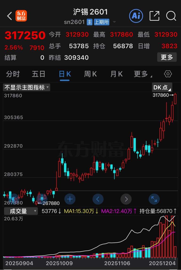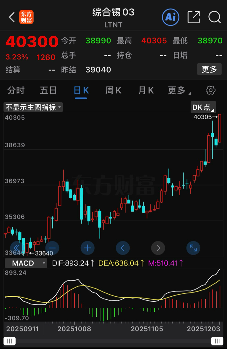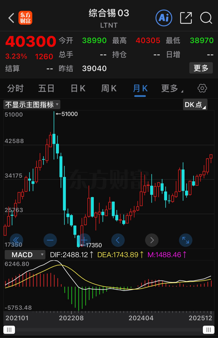 $锡业股份(SZ000960)$ 伦敦锡直线加速主升浪,锡夜盘爆涨,明天全球最大的锡矿高开后可能直接奔涨停了,伦敦锡库存见底,半导体新材料风电需求强劲,当前锡矿业储量跟不上长期需求,开发周期太长,锡的工业短缺远超铜铝,伦敦锡价51000见,在不确定的市场中要做最确定的事,才能跑赢市场,直接Allin!