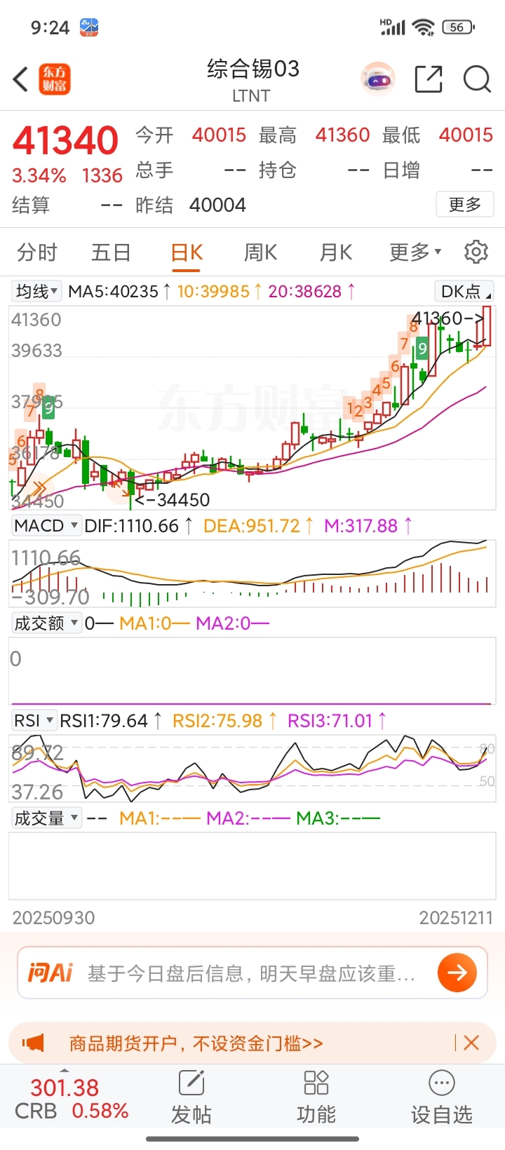 $锡业股份(SZ000960)$ 锡期货再创新高,买锡业的明天又能吃肉了