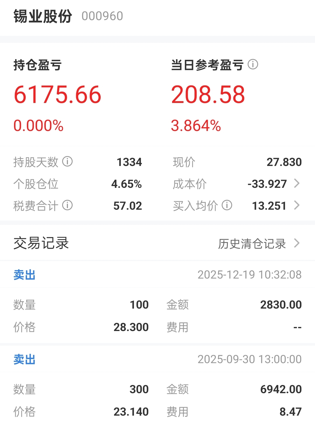 $锡业股份(SZ000960)$ 就剩一手了,想给9月30的自己一巴掌