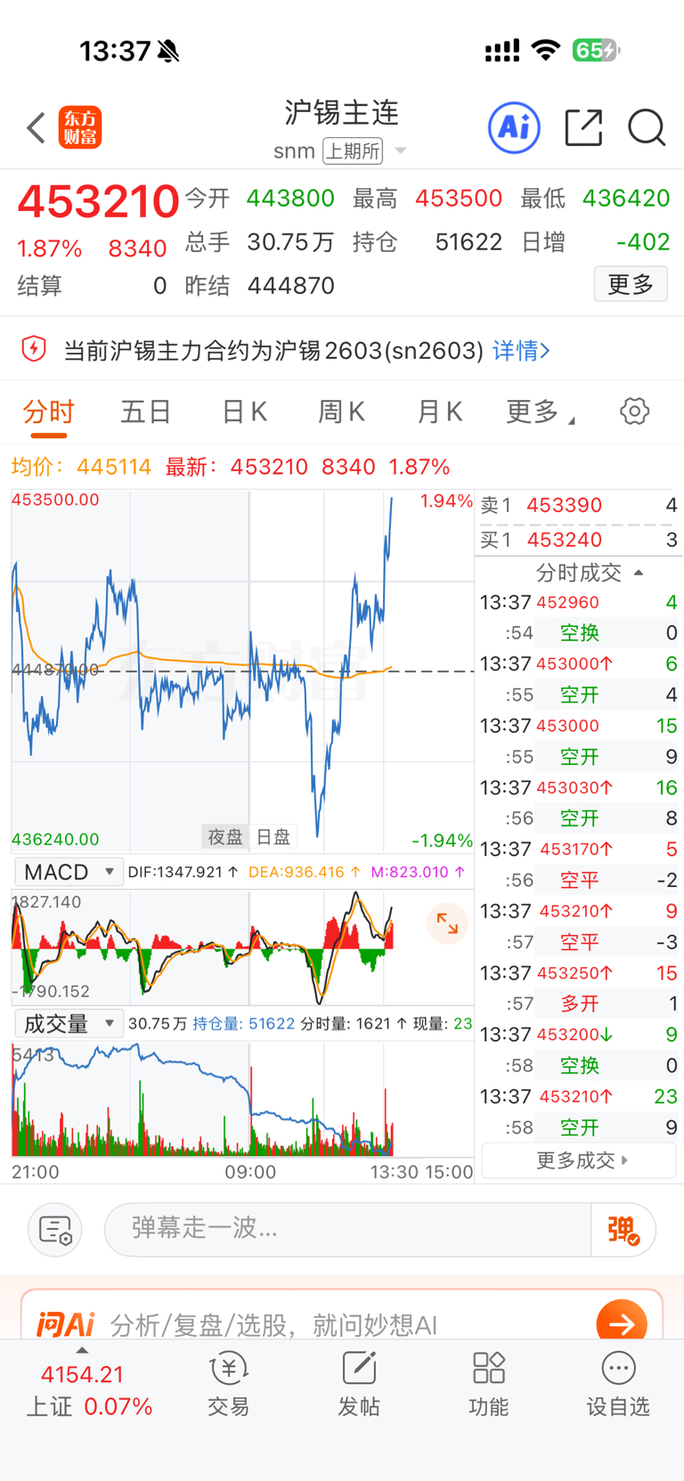 $锡业股份(SZ000960)$ 期货开始爆涨了!不要贱卖!