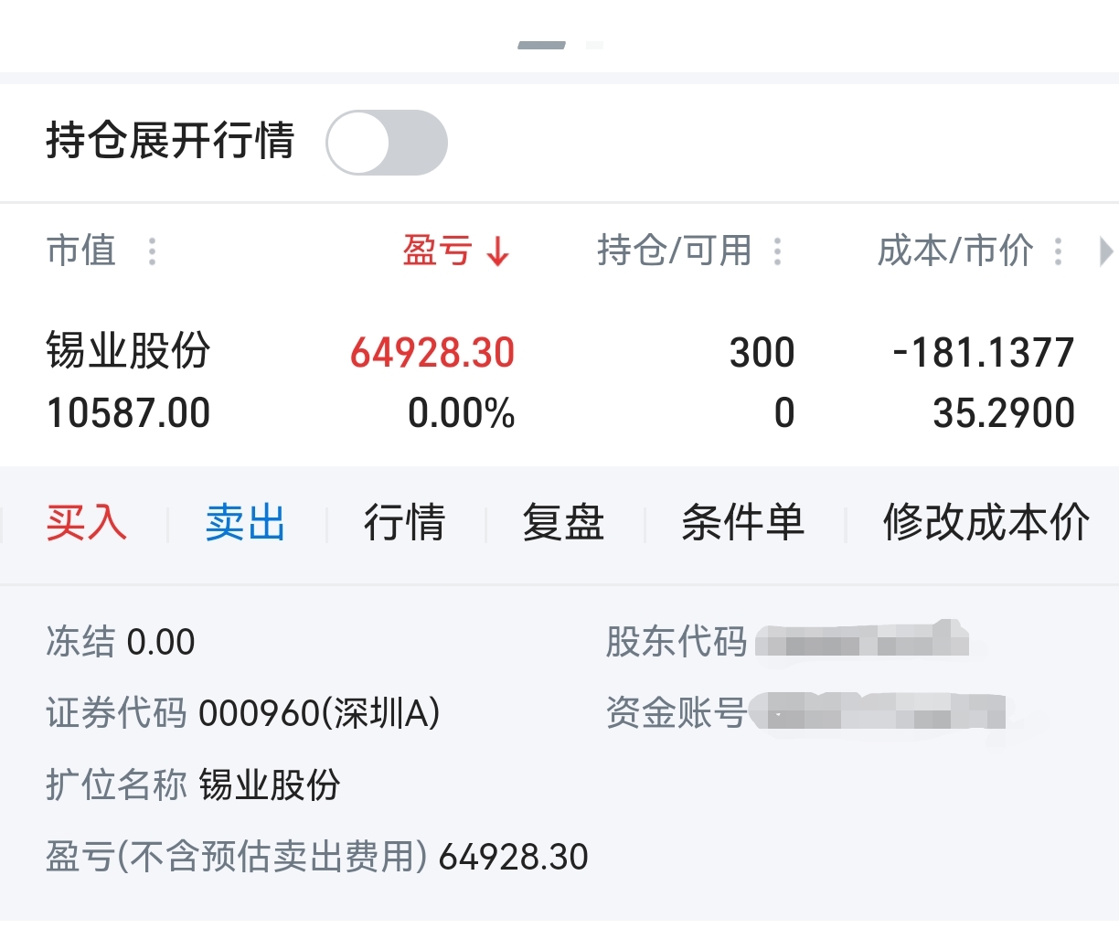 ,去紫金矿业了留了1W做个念想