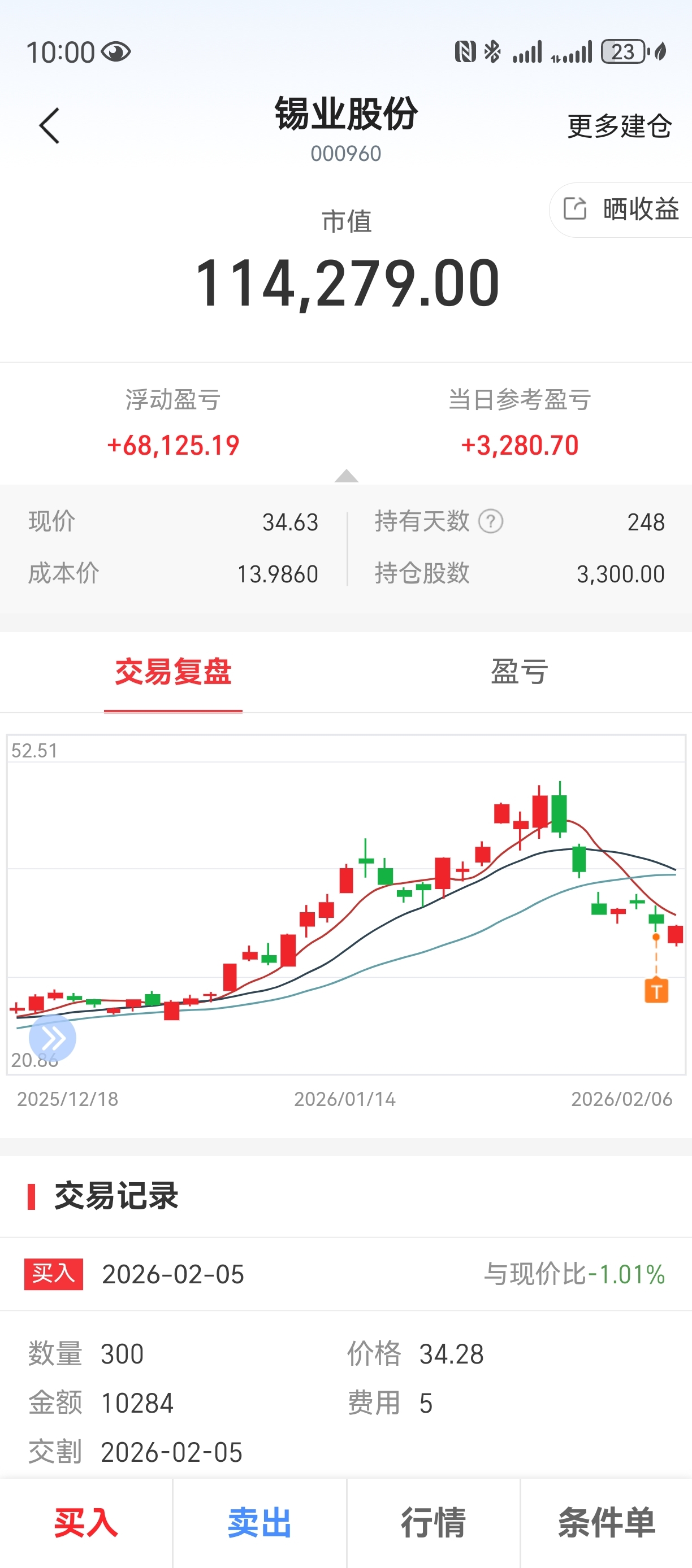 $锡业股份(SZ000960)$ 爽翻了 成本增加了1分 多买了100股