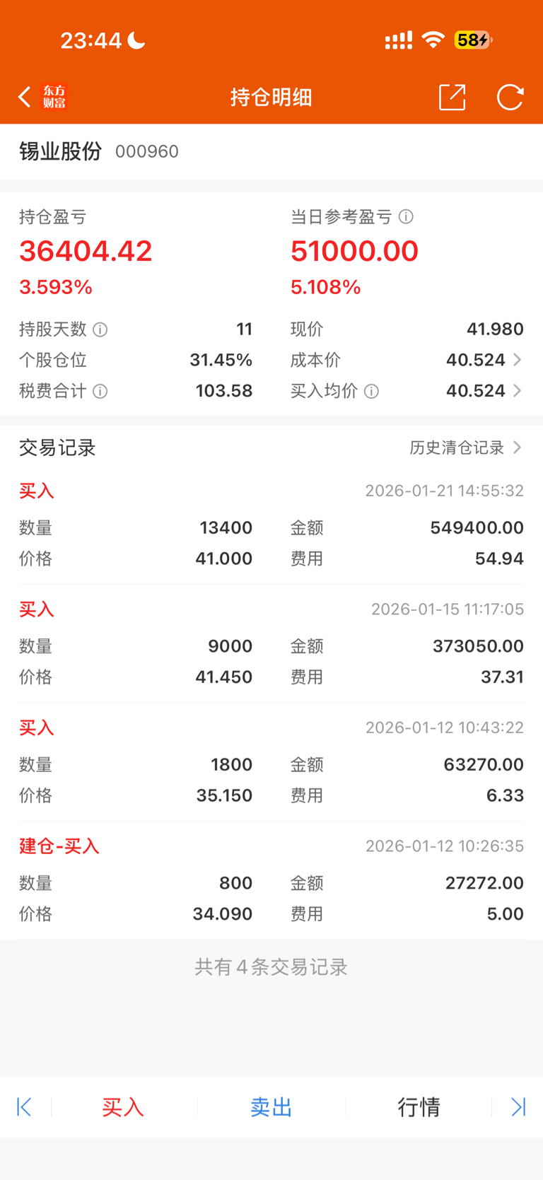 $锡业股份(SZ000960)$ 这么说吧上次锡价37w多的时候我是41.5建的仓
