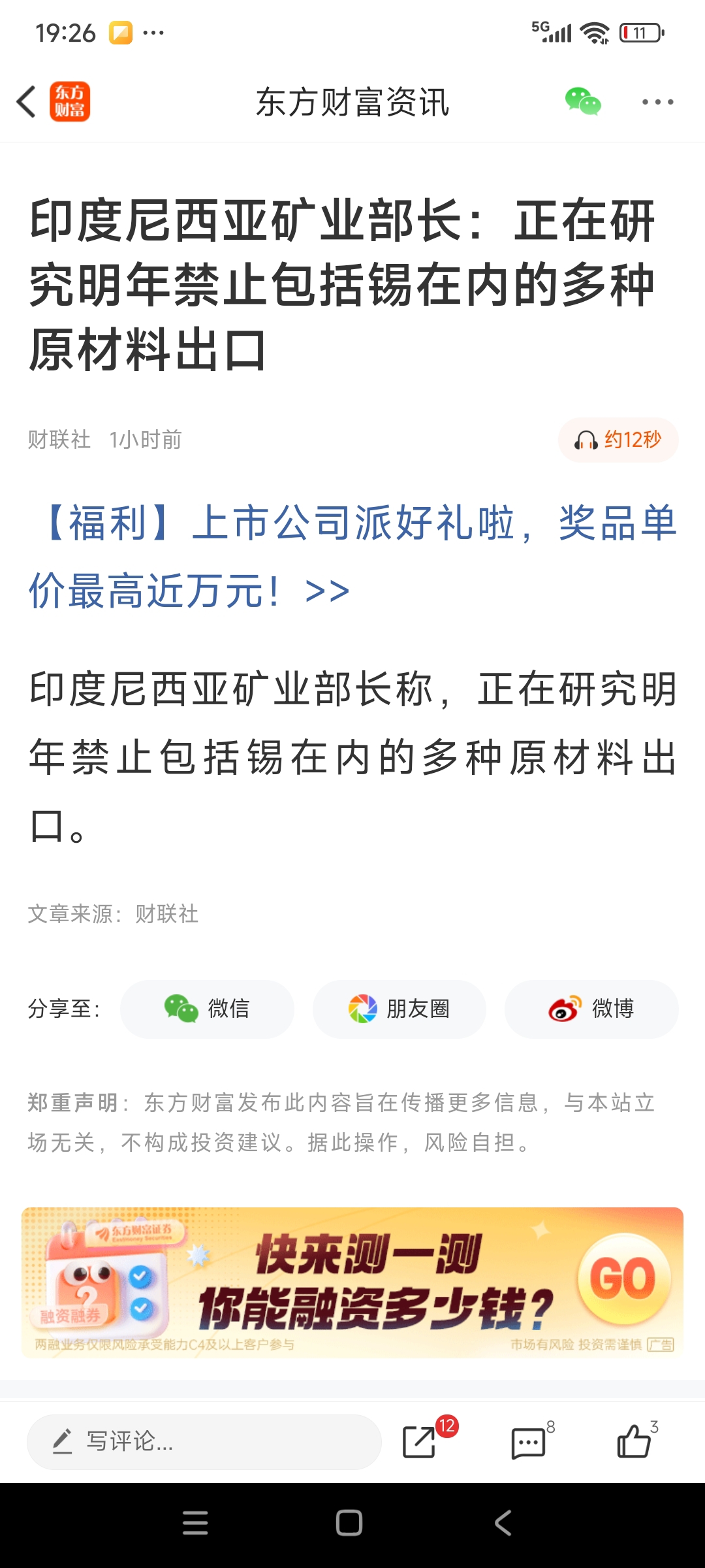 $锡业股份(SZ000960)$ 恭喜持仓过节的,来利好了