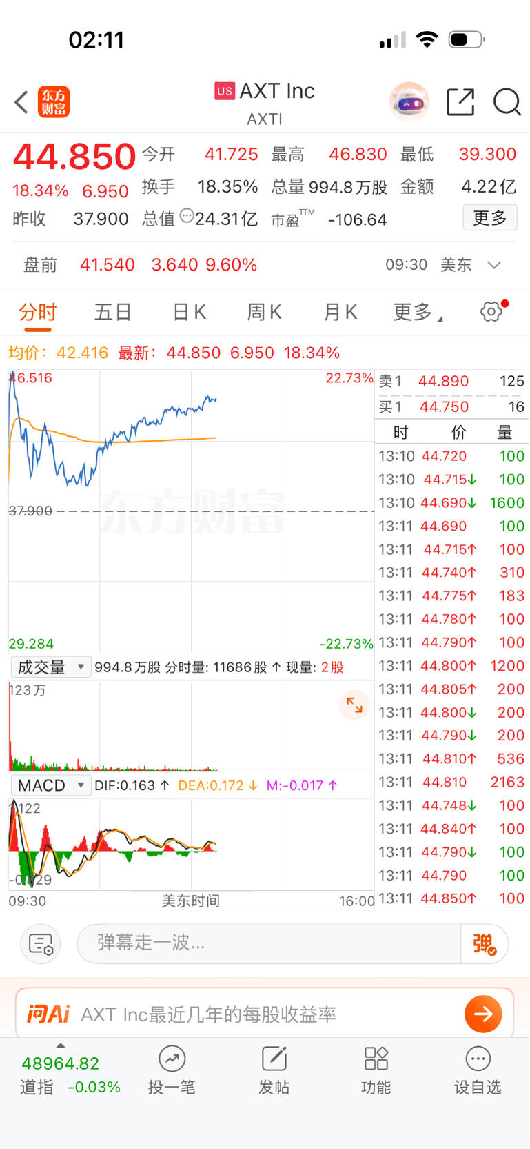 美股铟大涨,明天高举高打