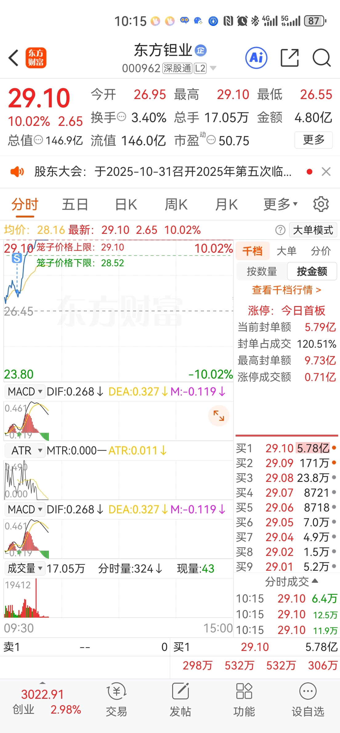 $东方钽业(SZ000962)$ 我就看了五分钟的盘,就让我赶上了