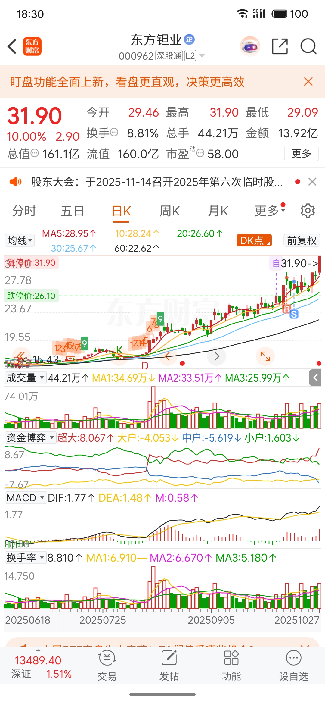 $东方钽业(SZ000962)$ 自选至今30个点,上次没卖的话,到今天也是15个点,芜湖了