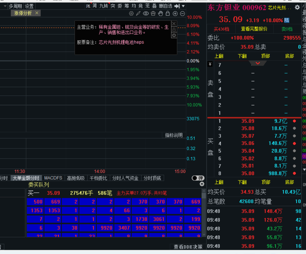 三重概念股:坦涨价,核电爆发,芯片概念。这里面有大主力,封单一度高达9.7亿
