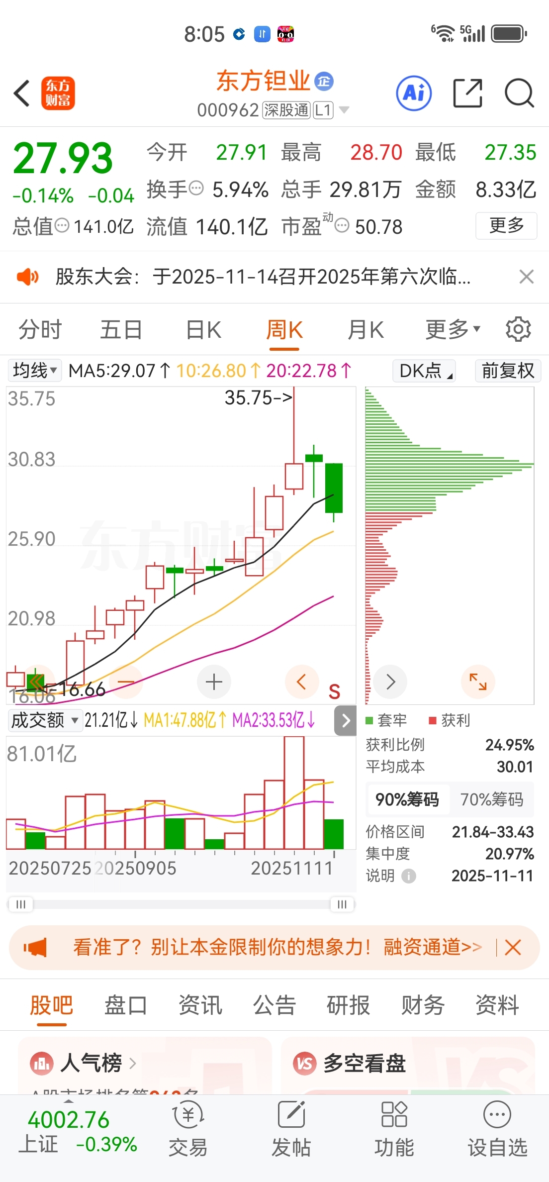 $东方钽业(SZ000962)$ 大长腿走起了,今天涨停板来了,只少连升三天!