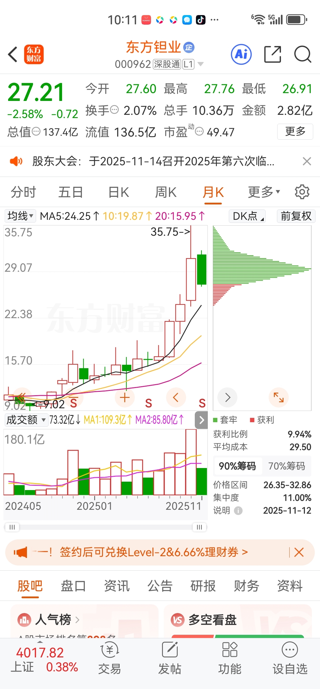 $东方钽业(SZ000962)$ 大长腿来了,#股市怎么看#