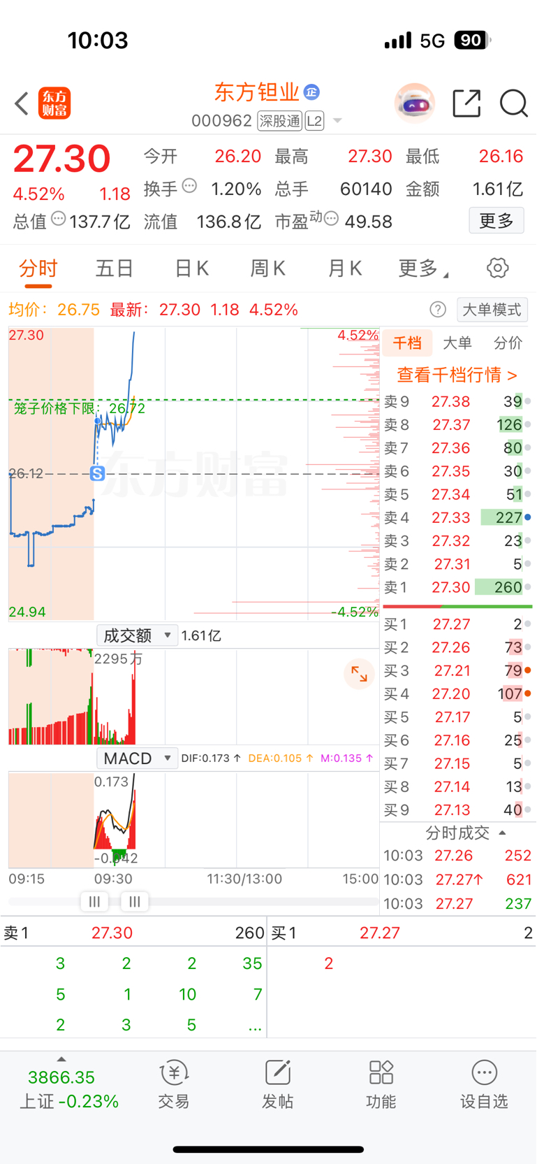$东方钽业(SZ000962)$ 守了一个月,一割,你就涨