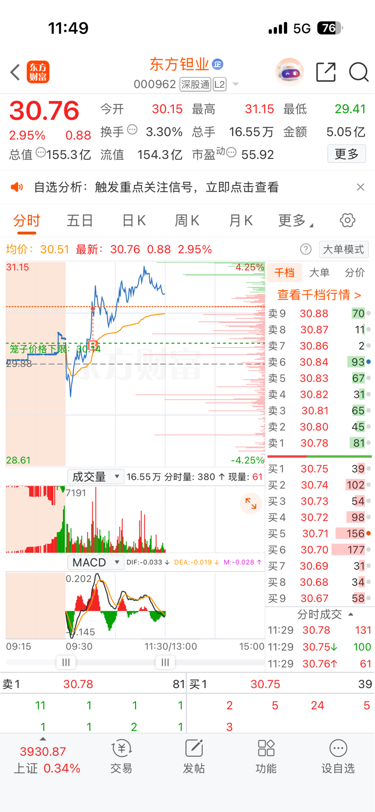 $东方钽业(SZ000962)$ 之前亏了出去,今天又忍不住进来了