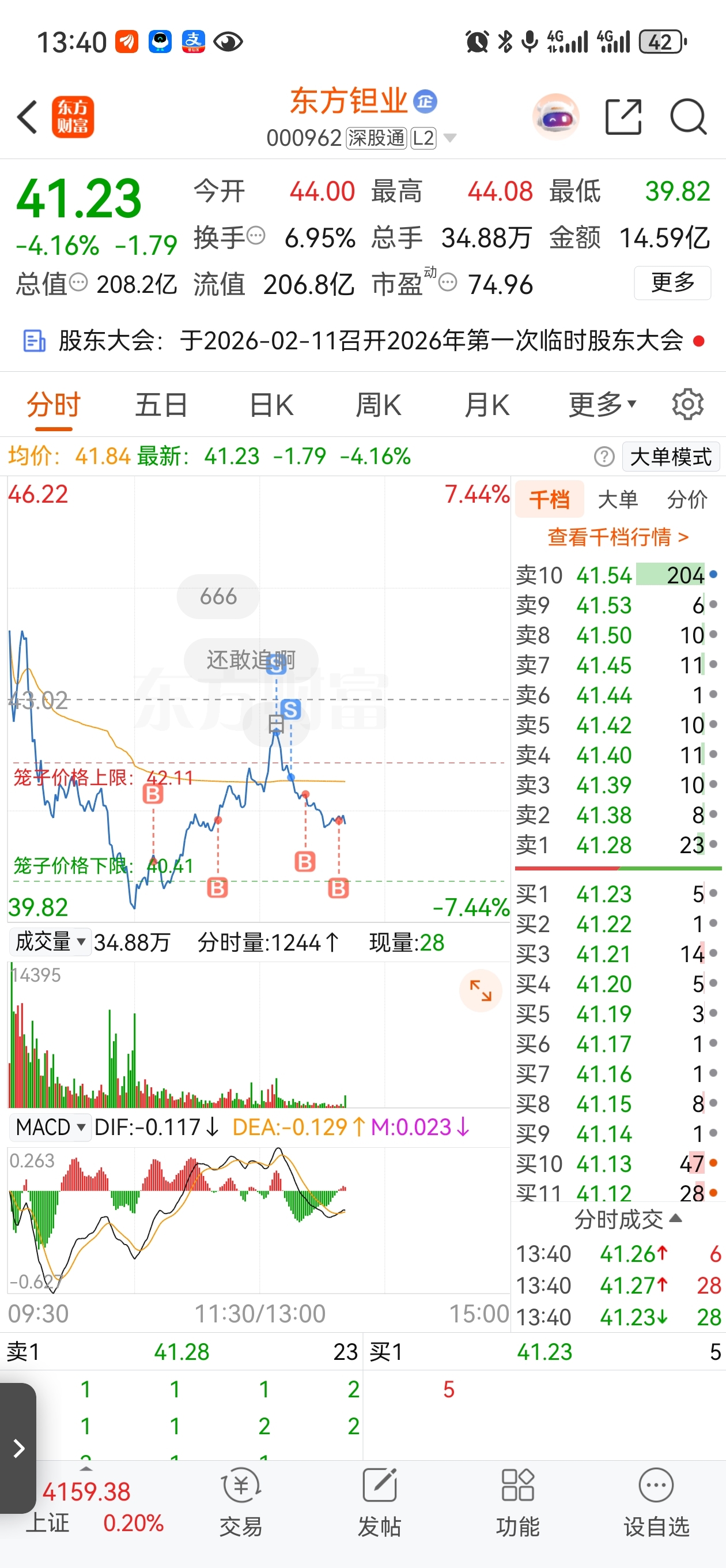 $东方钽业(SZ000962)$ 尾盘能红吗?