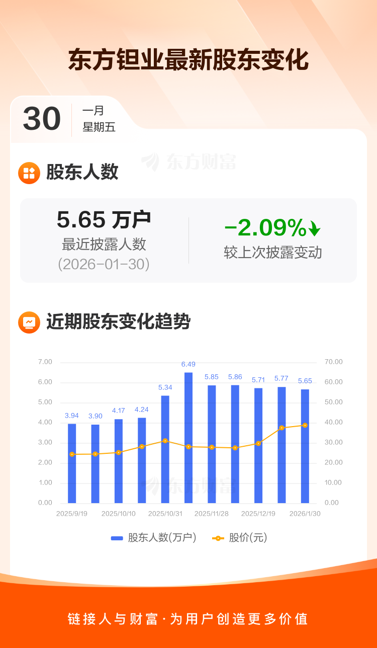 东方钽业:截至1月30日最新股东户数5.65万户,较上期减少2.09%
