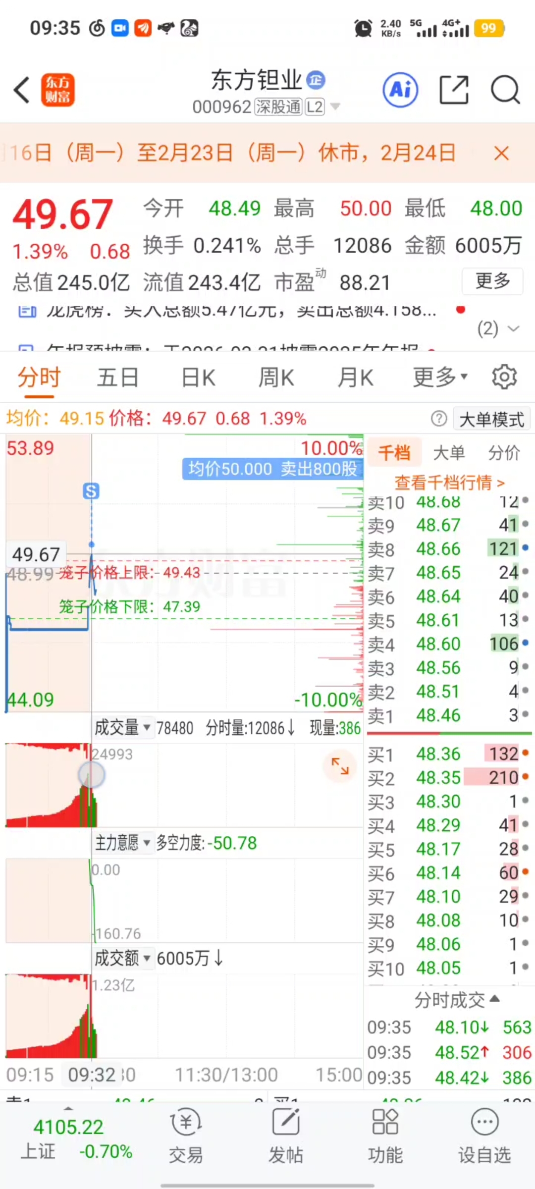 $东方钽业(SZ000962)$ 昨天进的赚了六个点,先跑为敬。