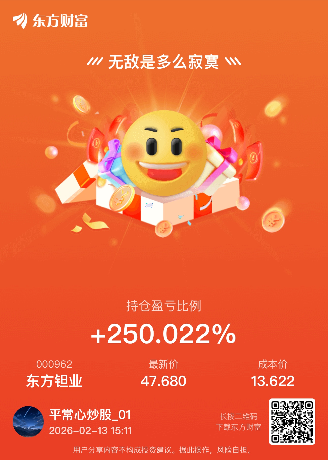 温馨提示: 1.根据《证券法》规定,禁止编造、传播虚假信息或者误导性信息,扰乱证券市场;2.用户在本社区发表的所有资料、言论等仅代表个人观点,与本网站立场无关,不对您构成任何投资建议。用户应基于自己的独立判断,自行决定证券投资并承担相应风险。《东方财富社区管理规定》