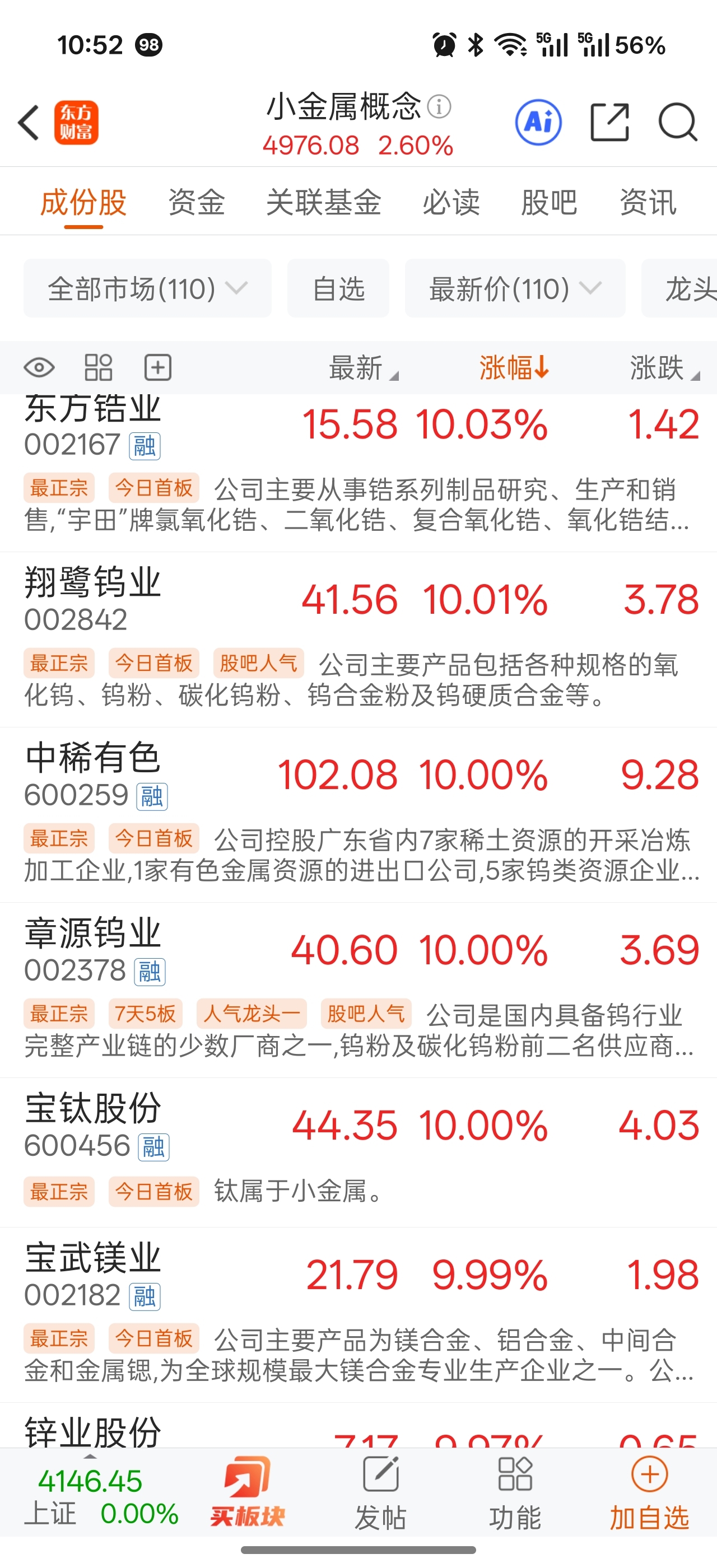 $东方钽业(SZ000962)$ 批量涨停。
