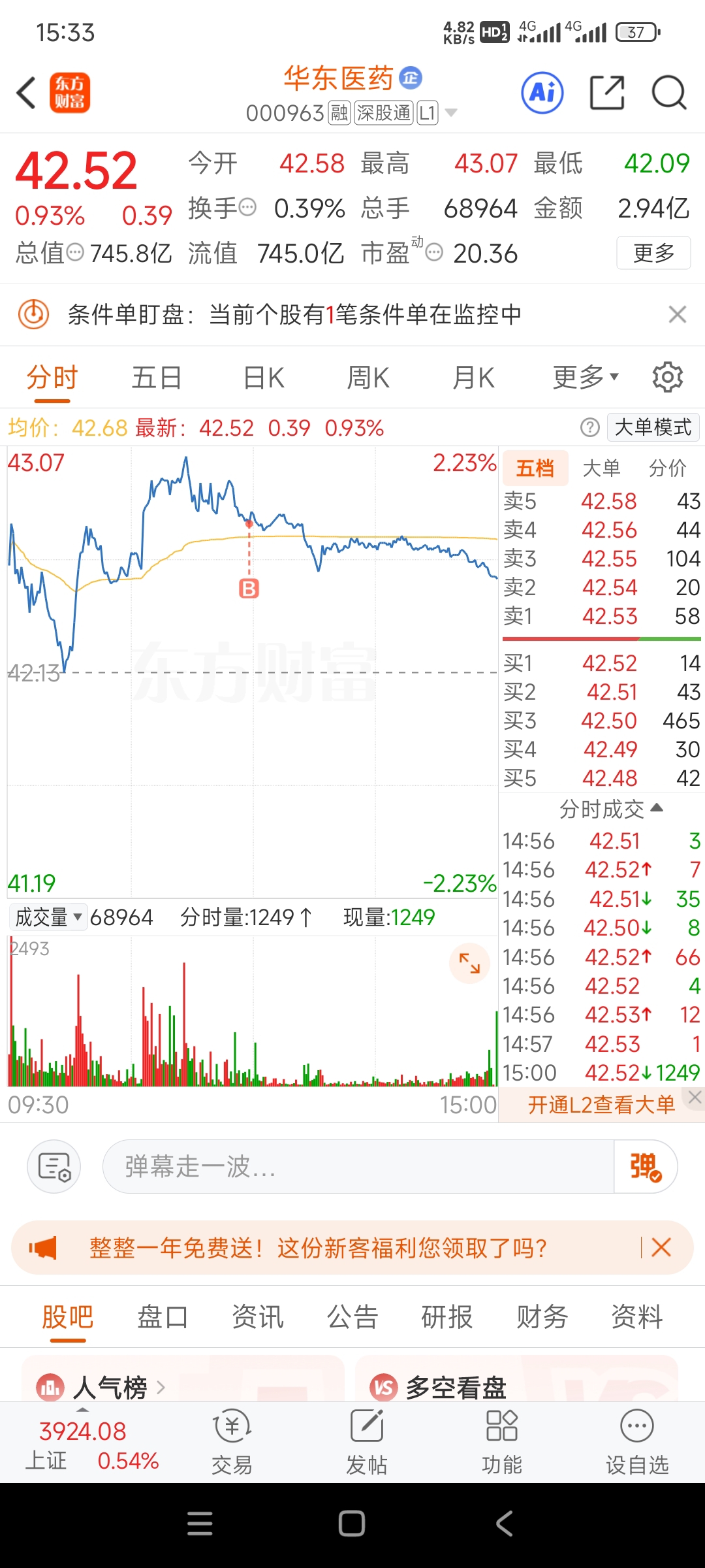 $华东医药(SZ000963)$ 42.75轻仓,网上看主播讲多周期共振买的,各方面确实都是多头排列,试下水,41.65止损。昨天晚上还看了健康元,昨晚还觉得健康元更好,计划买那边,今天再看,又发现这边更好