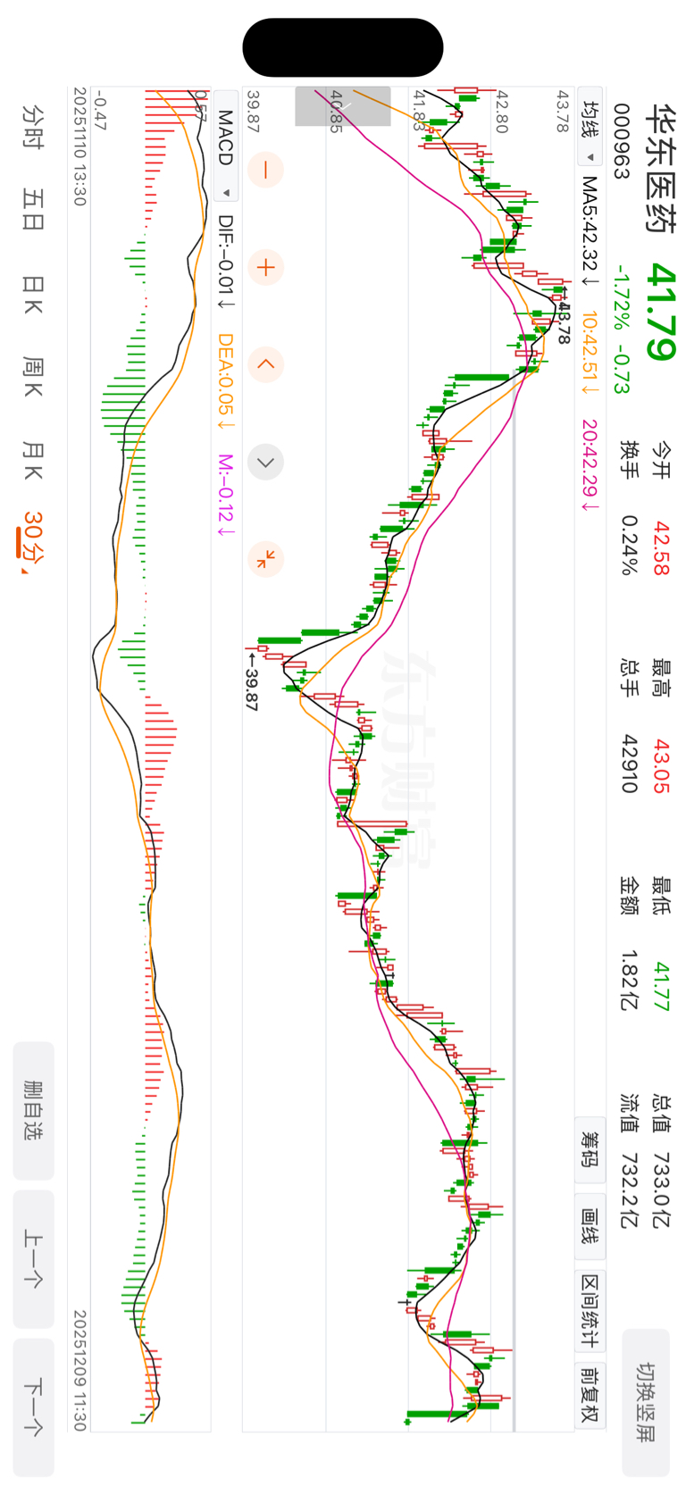 $华东医药(SZ000963)$ 打开30分钟线,死死的被东西压制。