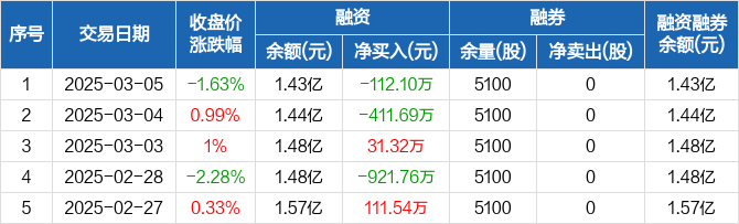 天保基建:融资净偿还112.1万元,融资余额1.43亿元(03-05)