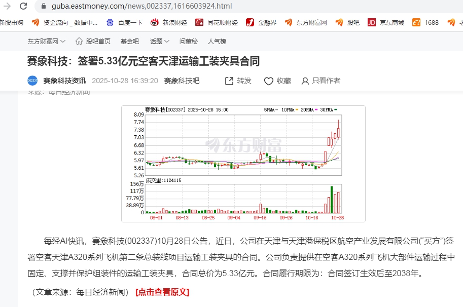 空客A320供应商大单来了,赛象科技签署空客天津A320系列飞机第二条总装线项目运输工装夹具的合同,合同总价为5.33亿元。