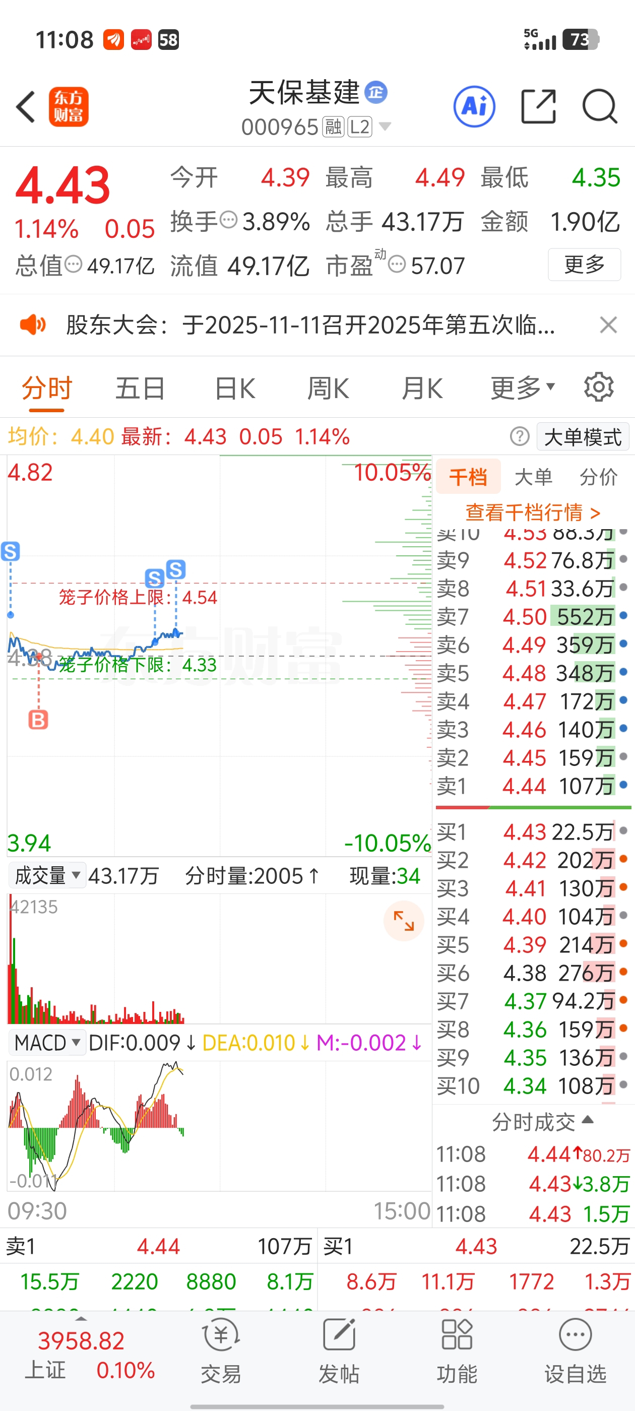 $天保基建(SZ000965)$ 半仓做T