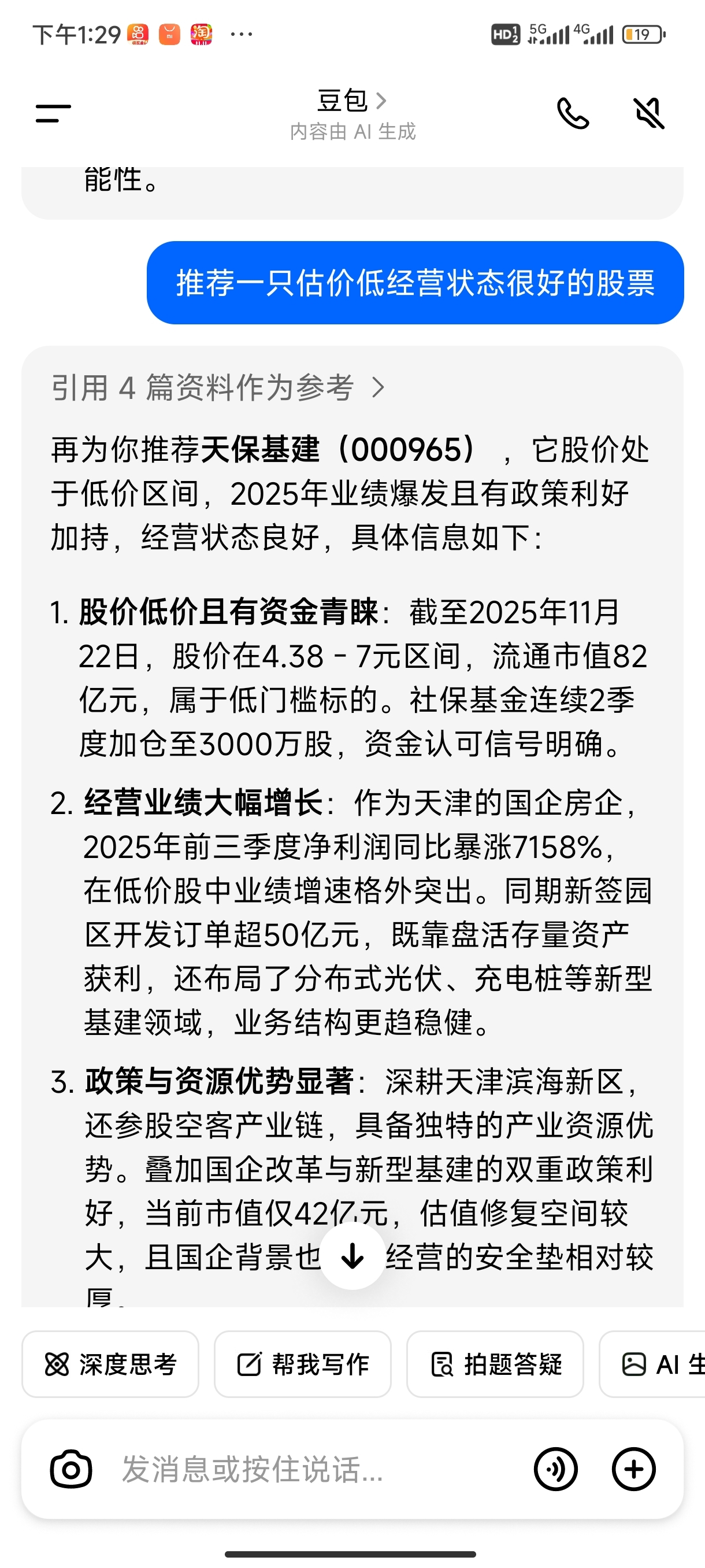 $天保基建(SZ000965)$ 我能发现你全靠中午吃饭问豆包