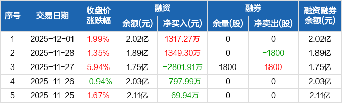 天保基建:融资净买入1317.27万元,融资余额2.02亿元(12-01)