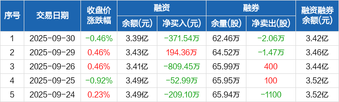 长源电力:融资净偿还371.54万元,融资余额3.39亿元(09-30)