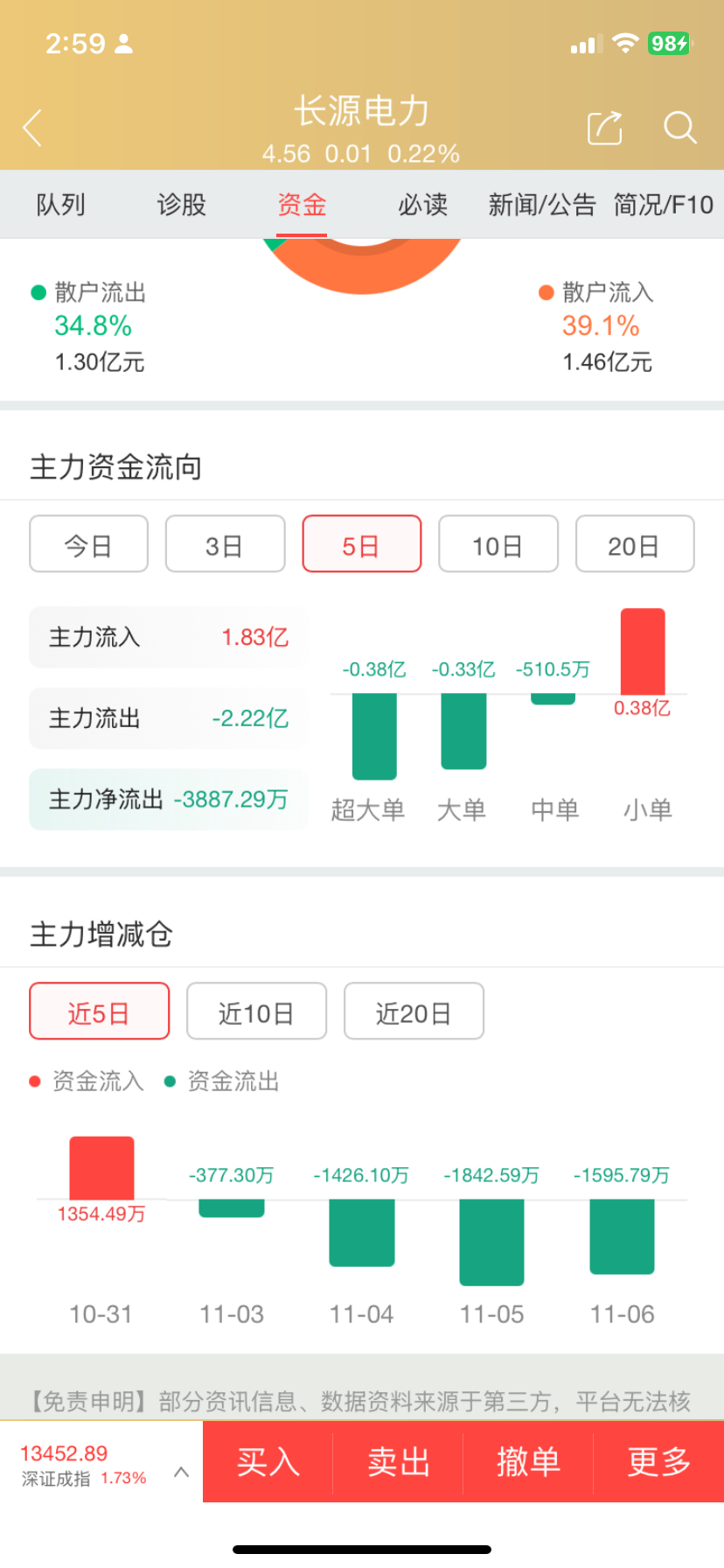 $长源电力(SZ000966)$ 趁着板块上涨,4天连续流出