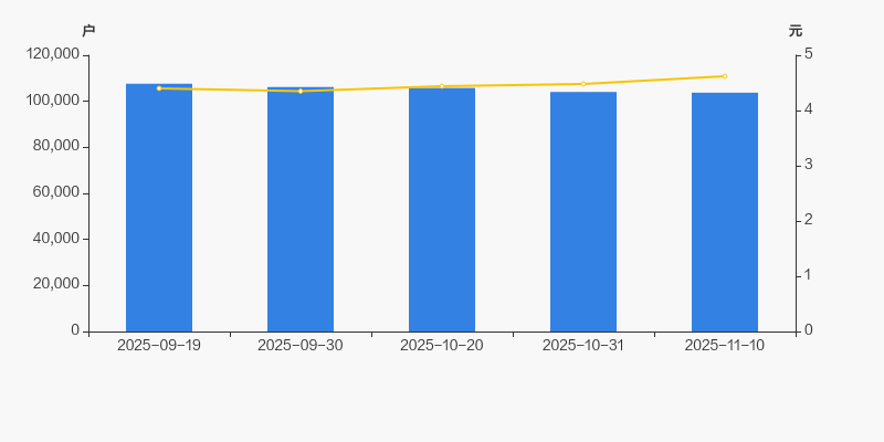 2025年9月19日至今,公司股东户数有所下降,区间跌幅为3.62%。2025年9月19日至2025年11月10日区间股价上涨5.00%。