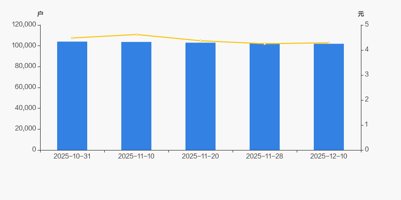 2025年10月31日至今,公司股东户数有所下降,区间跌幅为1.99%。2025年10月31日至2025年12月10日区间股价下降4.24%。