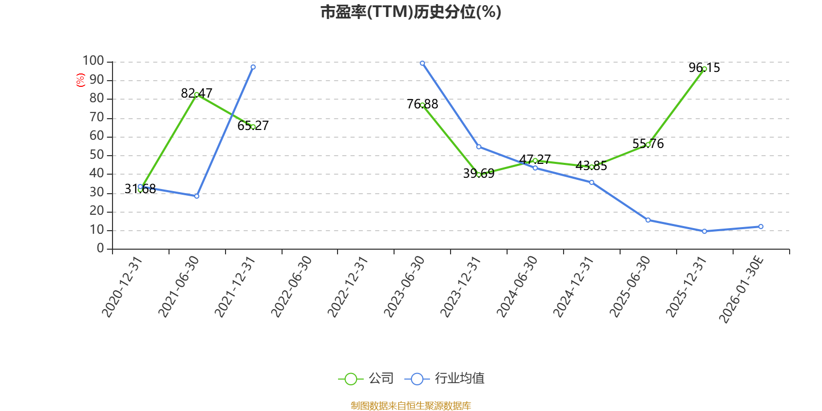 市盈率、市净率为负时,不显示当期分位数,会导致折线图中断。