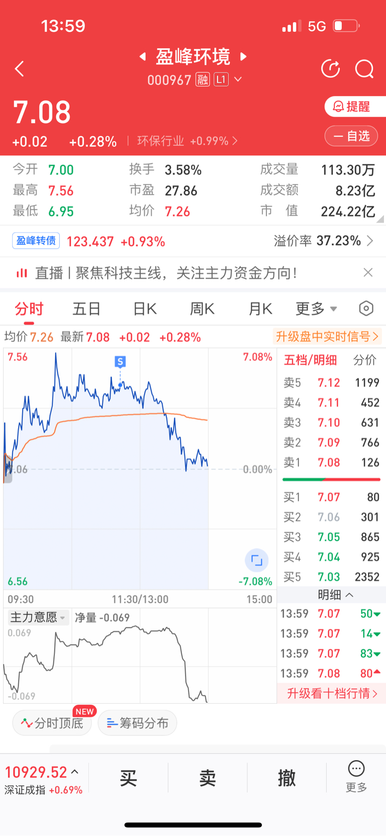$盈峰环境(SZ000967)$ 没钱的主力看透了,呆了两天走了