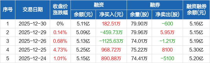 盈峰环境:融资净买入182.51万元,融资余额5.11亿元(12-30)
