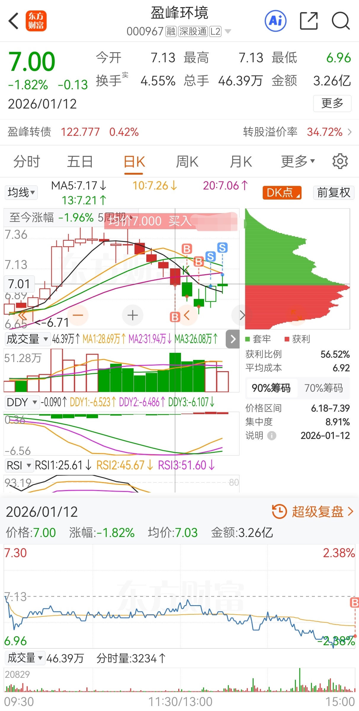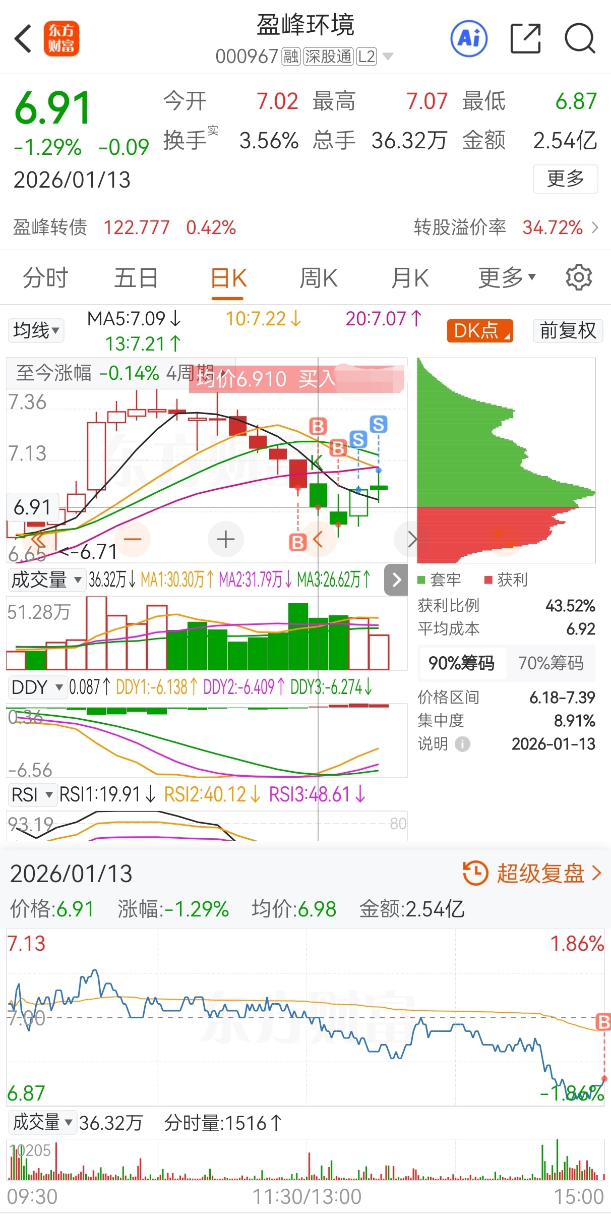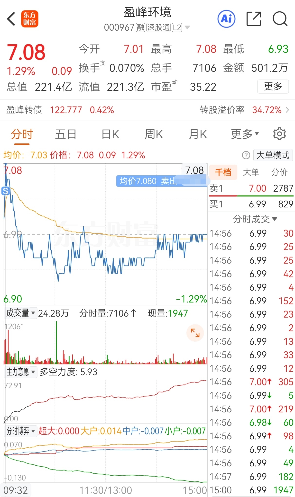 $盈峰环境(SZ000967)$ 原计划今买明卖,实际7买,6.91加仓,6.83再加仓,6.99减仓,7.08卖,实盘短线套利盈峰环境,成功收米走人!