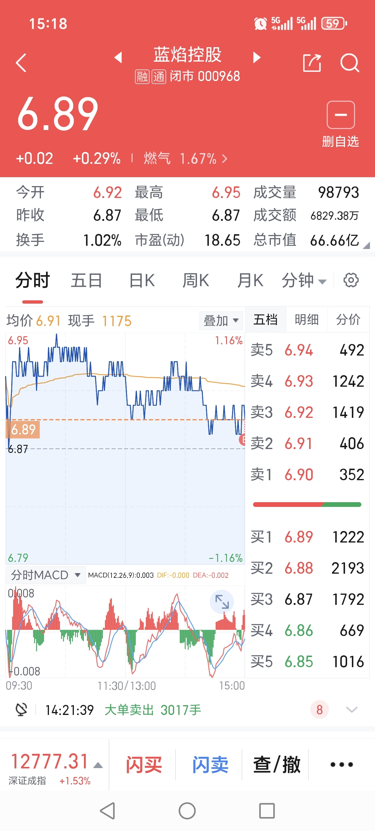 $蓝焰控股(SZ000968)$ 收盘竞价买入,静待花开......